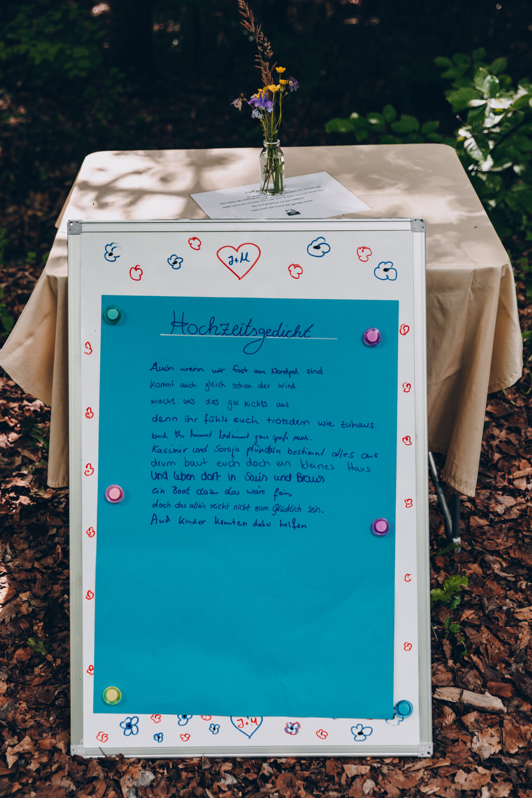 Wir haben uns Anfang des Jahres dazu entschieden, online an einem Kurs zum Thema Auswandern nach Norwegen teilzunehmen. Zweimal die Woche treffen wir online Menschen, die dasselbe Ziel verfolgen wie wir. Manche in einigen Monaten, manche auch erst in Jahren doch so nah dran wie wir ist keiner. Der Kursbeginn ist Ende Mai und das Ende des Kurses ist passenderweise in unserer letzten Woche in Deutschland. Eigentlich war geplant, Mitte Mai loszufahren. Mittlerweile nehmen wie es wir es kommt und fahren los, sobald die Grenzsituation dies zulässt und wir nutzen die uns verbleibende Zeit dazu, eine Hochzeit zu planen. Eigentlich hatten wir uns im März schon dazu entschlossen, die für den 29. Mai geplante Hochzeit abzusagen und zu verschieben. Als Ersatztermin war der 17.September 2022 geplant. Meiner Physiotherapeutin sei Dank habe ich mir dies dann doch noch anders überlegt. Anfang Mai, drei Wochen vor dem 29.05 überfiel ich Marcel mit der Idee, eine Art Schnitzeljagd zu veranstalten und wir tüfteln gemeinsam die Einzelheiten dazu aus. Mir war es wichtig, kirchlich das Ja – Wort zu bekommen. Von der Instanz dort oben. Zudem war es mir ein Anliegen, unsere Familie und unsere Freunde noch einmal sehen zu können, ohne alle einzeln einladen zu müssen denn dazu fehlte uns die Zeit.