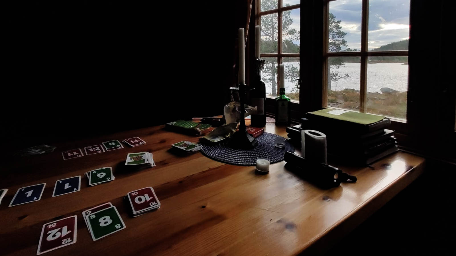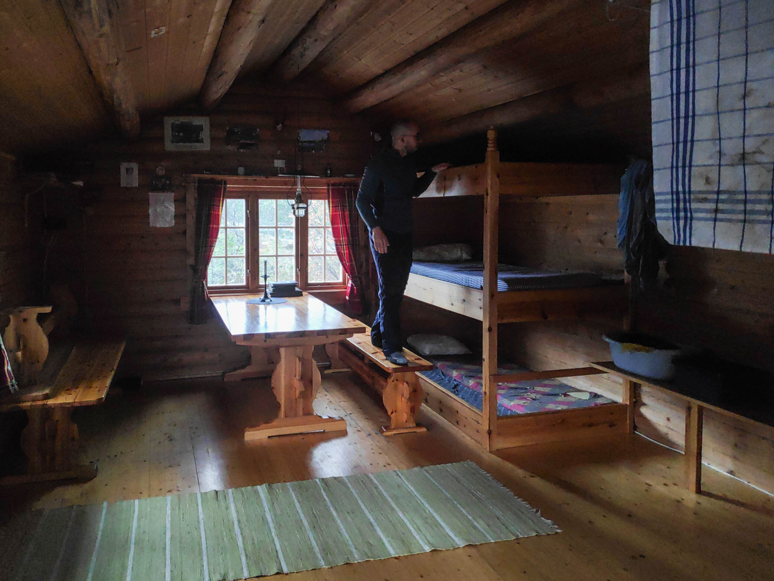 Gegen 17 Uhr kehren wir in die Hütte zurück. Zuerst sorgen wir für Licht und Wärme mithilfe des Holzofens, den Kerzen und der reparierten Petroleumlampe. Es ist schwierig, die richtige Raumtemperatur auszutarieren so dass es zum Schlafen nicht zu kalt, aber auch nicht zu warm ist.