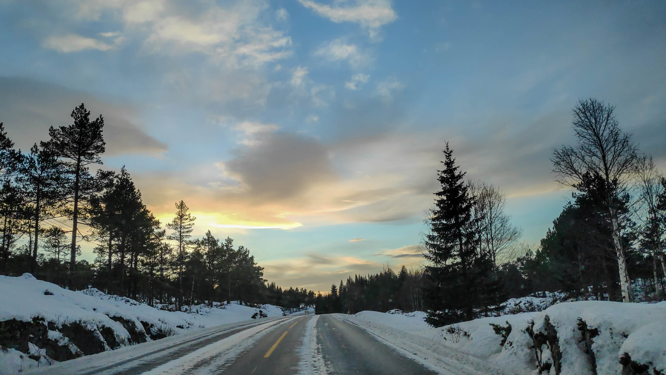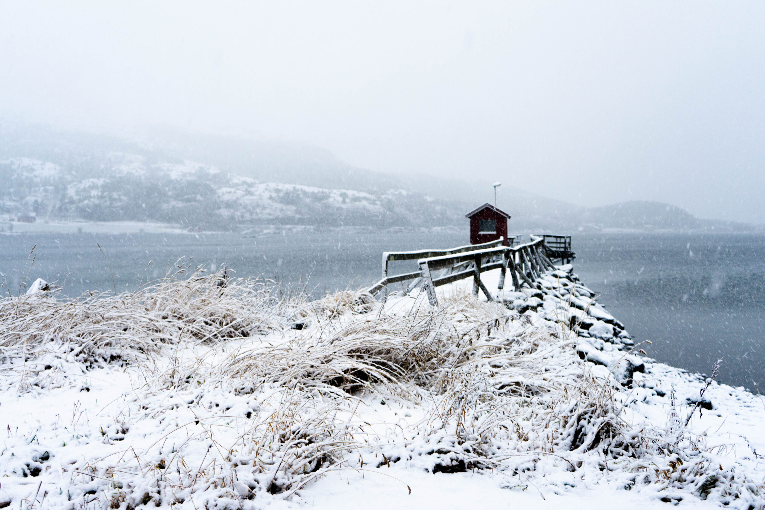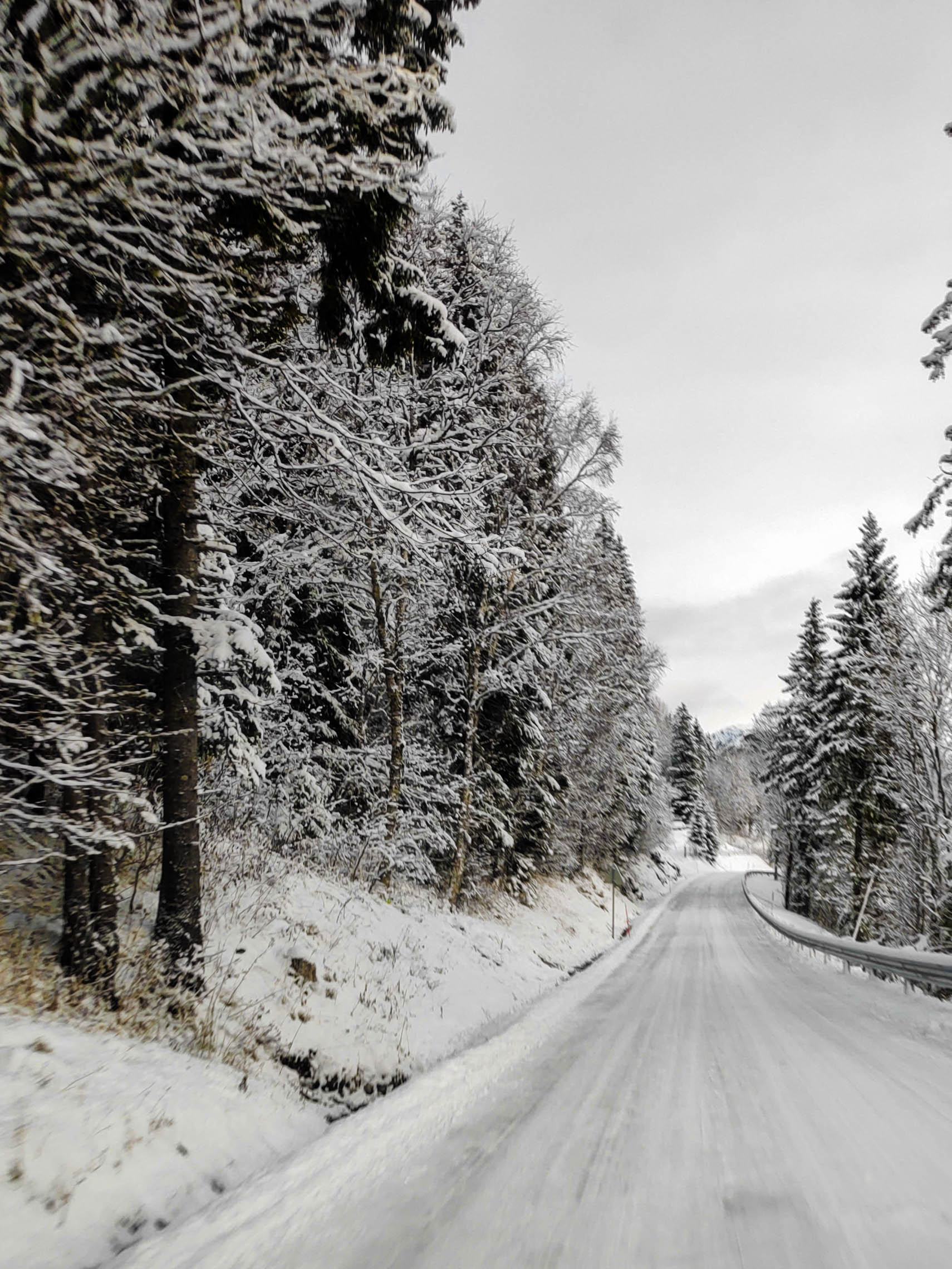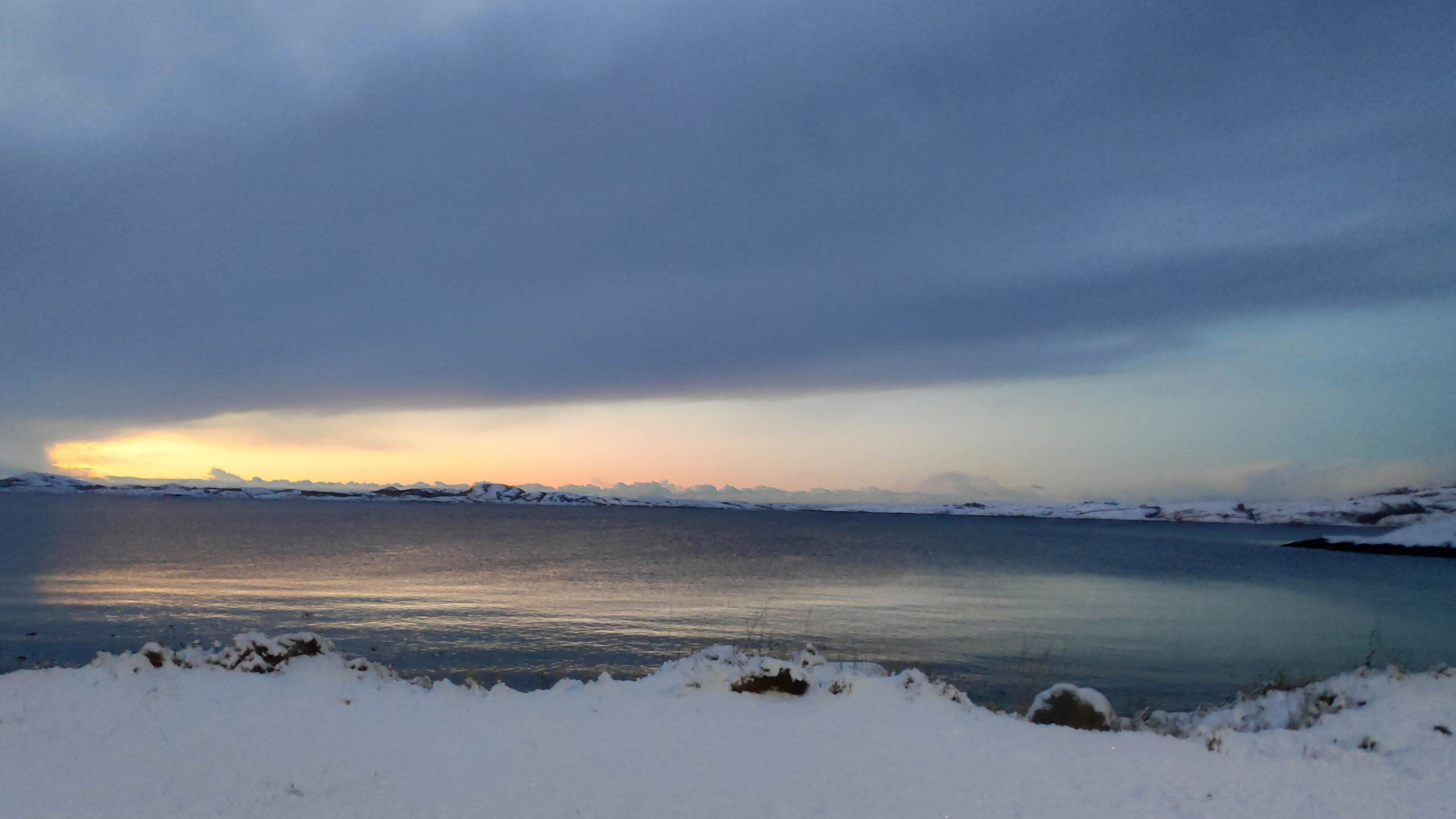 Die Straße wird, wie aus Trotz, unter einer Schicht aus Eis und Schnee begraben. Die Erde wehrt sich gegen die Bevölkerung und mahnt dazu, das Auto einfach stehen zu lassen. Wenn wir dies doch nicht tun, weil wir zur Arbeit müssen, einkaufen, Freunde besuchen, dann zeichnen wir Schneeverwehungen mit unseren Reifen, die aussehen wie Nebel, der die Fahrbahn umspielt. Wenn der Schnee, vom Wind getrieben, aufs Autodach fällt dann sitzt man besser nicht darin damit man nicht im Weiß erblindet. Wenn alles weiß ist dann ist der Kontrast zur Dunkelheit unendlich. Dann ist der Sonnenuntergang aus Aquarell und die blaue Stunde in der Bewegung verharrt. Dann bleibt die Katze im Warmen und die Ängste fliegen über den Horizont hinweg. Treffen auf die Wolken, werden zu Schnee und fallen ins Meer. Vermischen sich mit dem Meer der Sehnsucht, dem Meer des Heimwehs, dem Meer der unendlichen Freiheit und Weite, die man in diesem Land nach jeder Kurve neu entdeckt.