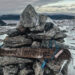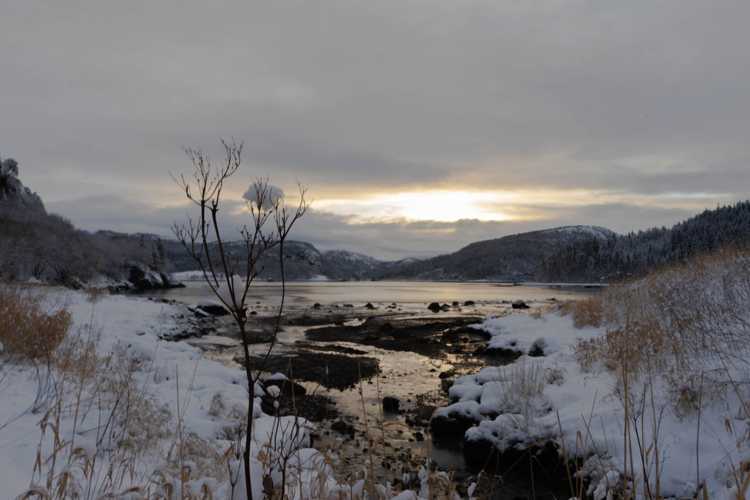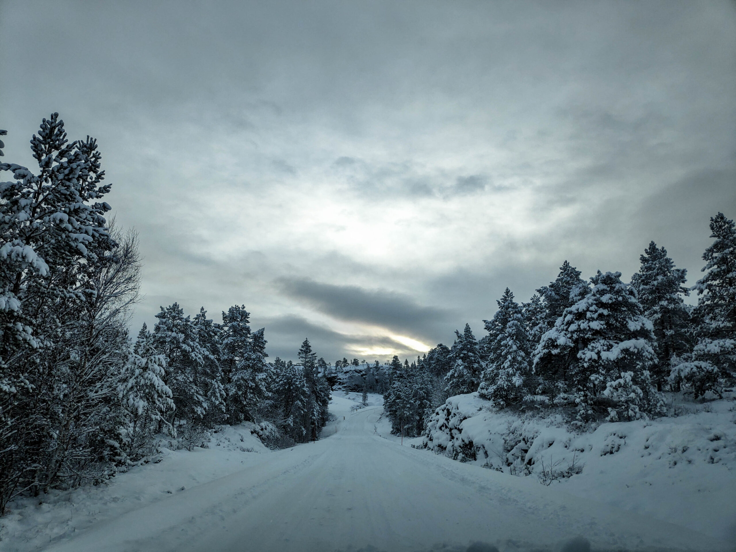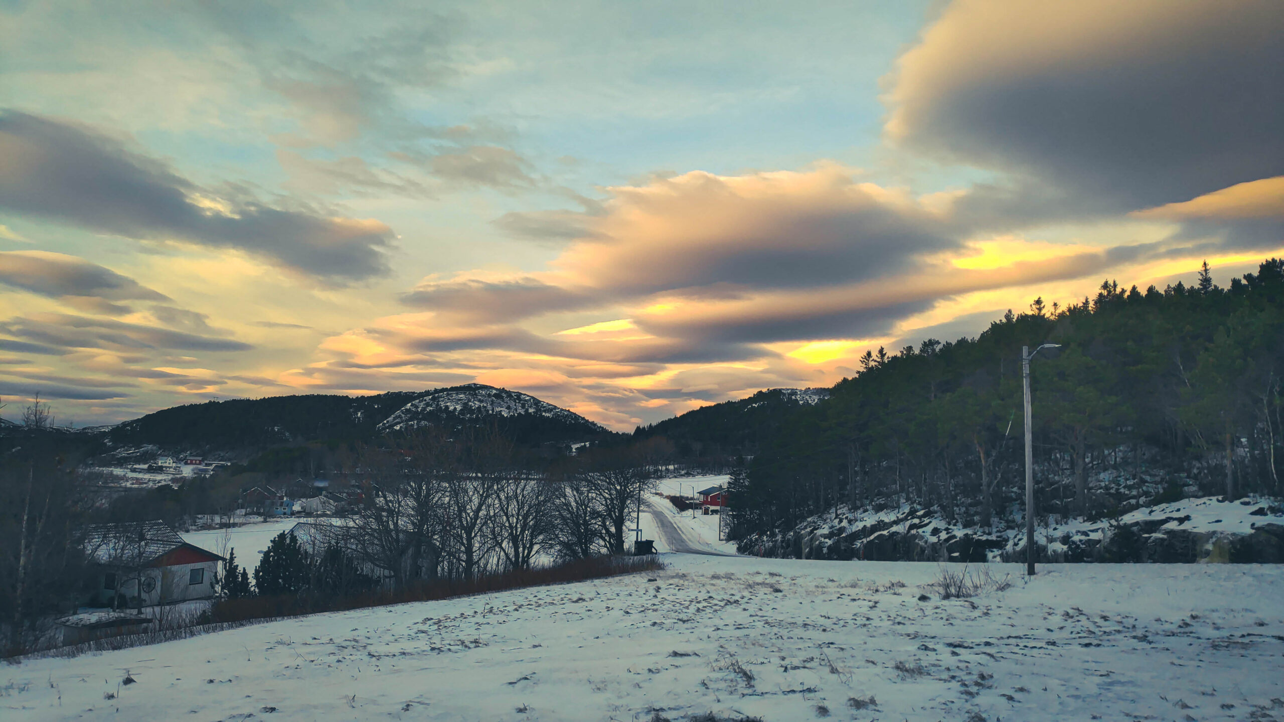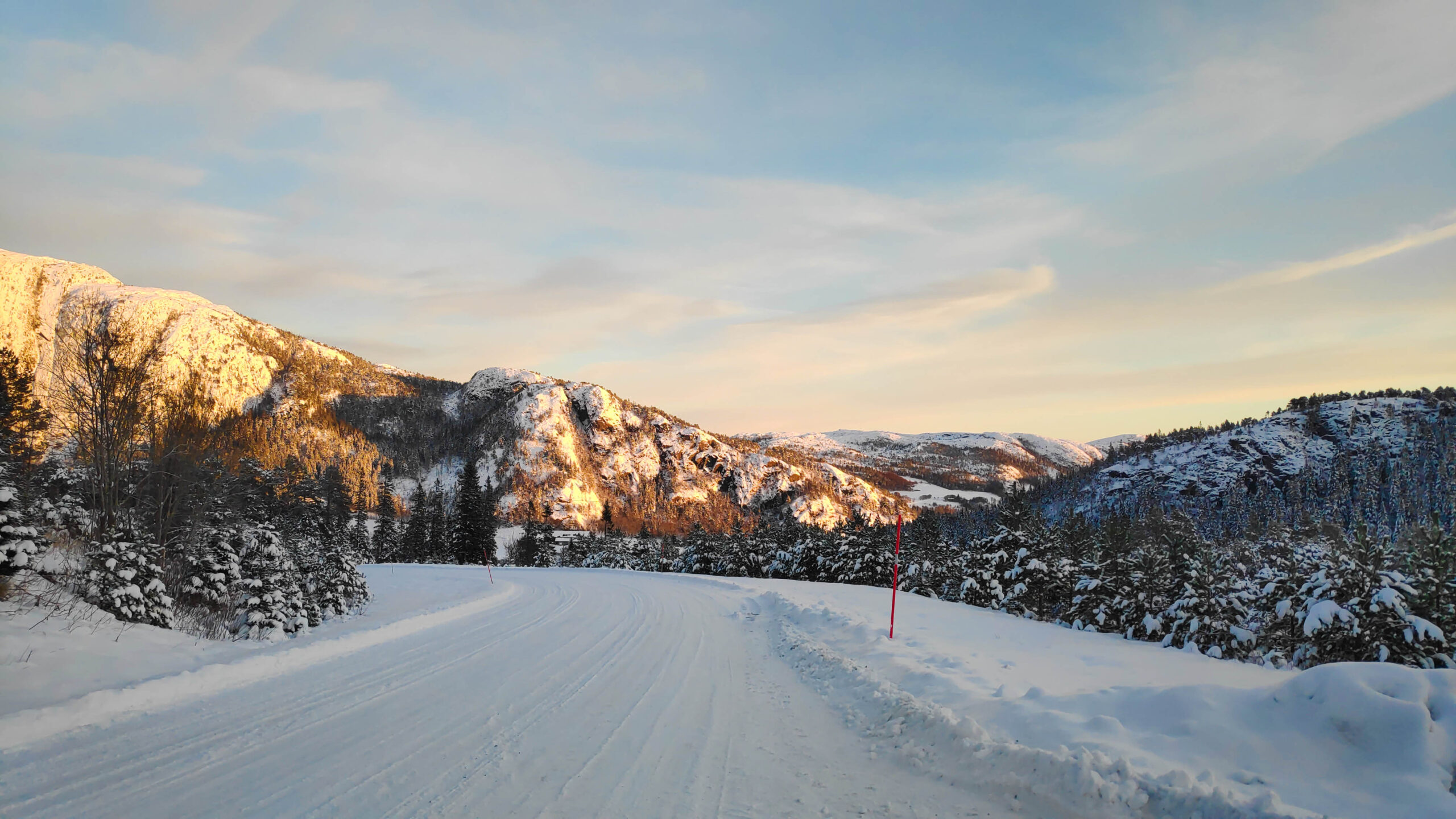 Die Straße wird, wie aus Trotz, unter einer Schicht aus Eis und Schnee begraben. Die Erde wehrt sich gegen die Bevölkerung und mahnt dazu, das Auto einfach stehen zu lassen. Wenn wir dies doch nicht tun, weil wir zur Arbeit müssen, einkaufen, Freunde besuchen, dann zeichnen wir Schneeverwehungen mit unseren Reifen, die aussehen wie Nebel, der die Fahrbahn umspielt. Wenn der Schnee, vom Wind getrieben, aufs Autodach fällt dann sitzt man besser nicht darin damit man nicht im Weiß erblindet. Wenn alles weiß ist dann ist der Kontrast zur Dunkelheit unendlich. Dann ist der Sonnenuntergang aus Aquarell und die blaue Stunde in der Bewegung verharrt. Dann bleibt die Katze im Warmen und die Ängste fliegen über den Horizont hinweg. Treffen auf die Wolken, werden zu Schnee und fallen ins Meer. Vermischen sich mit dem Meer der Sehnsucht, dem Meer des Heimwehs, dem Meer der unendlichen Freiheit und Weite, die man in diesem Land nach jeder Kurve neu entdeckt.