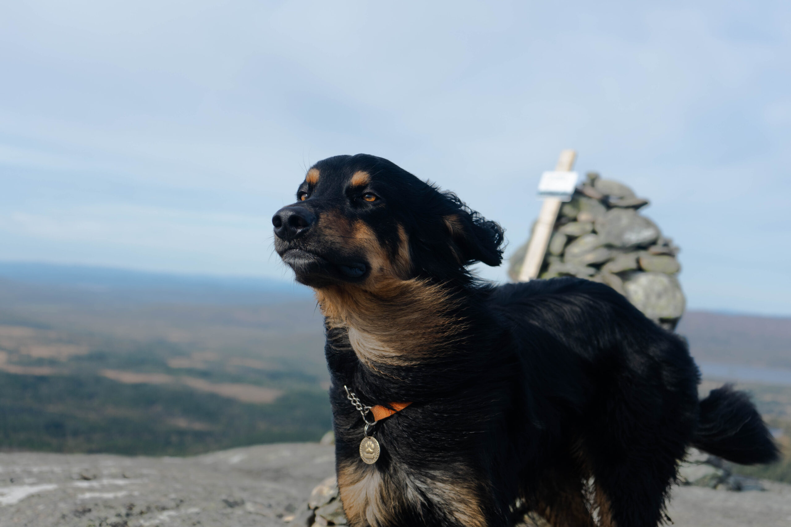 Lea hat Besuch von Oscar, der uns auf der Wanderung begleiten wird. Oscar ist braun, hat vier Beine und Fell. Ein wunderschöner, jedoch sehr pubertär – verspielter Hovawart mit beinahe unerschöpflicher Energie. Wir gehen heute gemeinsam wandern. Wir wandern zu einem von zehn Zielen der App “ti på topp steinkjer”. Jeden Sommer gibt es, regional ausgewählt, zehn Wanderziele in dieser App, zehn Gipfel, die es zu erreichen gibt. Das soll dazu motivieren, in die Natur zu gehen. Man kann seine Touren und gewanderten Kilometer in der App eintragen um auf Platz eins der Bestenliste zu kommen. Man kann einen Berggipfel erst dann einloggen, wenn man tatsächlich hinaufgewandert ist, das GPS muss auf dem Gipfel aktiviert werden um den Berg als gewandert zu markieren. Viele Regionen und Städte Norwegens haben ihre eigene Ti på topp Seite nzw App. Ausgenommen unsere natürlich, hier in unserer direkten Umgebung gibt es diese Möglichkeit leider nicht.