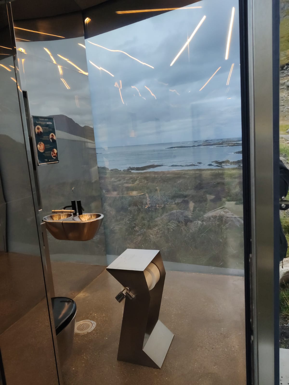 Norwegens hat vor Jahren einmal einen Künstler damit beauftragt, überall im Land mit Zuschüssen in Millionenhöhe Toiletten zu entwerfen und zu bauen. Wir durften heute eine davon besuchen.