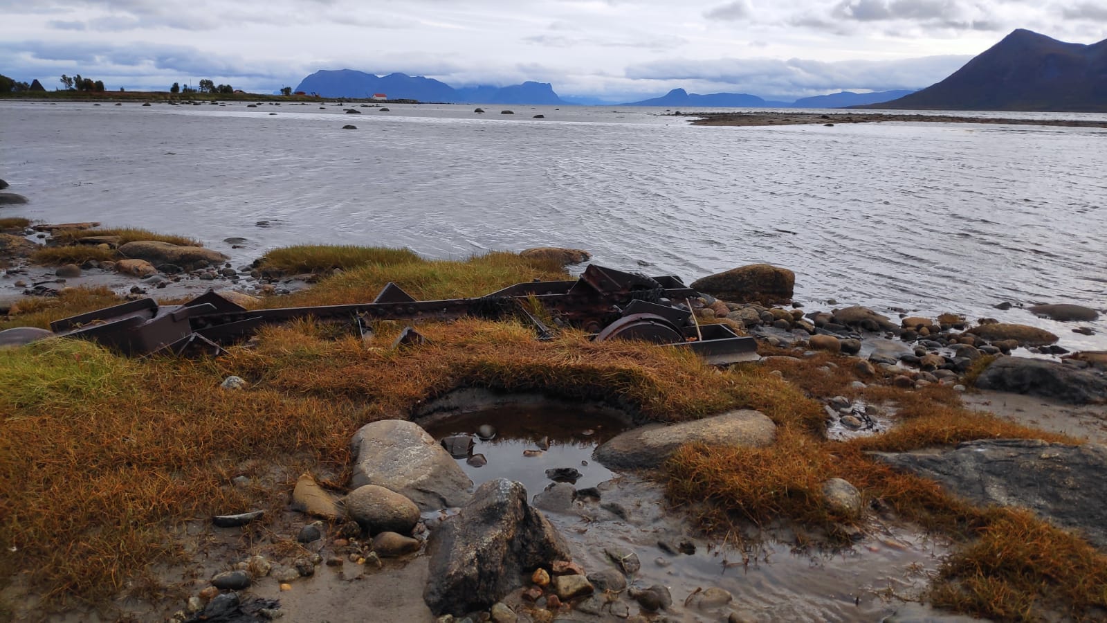 Die Nordnorweger lassen sich Zeit und was bei uns 30 Minuten dauert, dauert hier gut viermal so lange. So nutzen wir die Zeit dazu, am Strand Treibgut zu sammeln. Der Strand lag bei Ebbe vor uns wie ein einladendes Buffet. Für die Möwen, die über uns kreisten war er das bestimmt. Im Sand und Schlick vergraben retteten wir einsame Muscheln davor, an den Klippen zu zerschellen und hinderten ein paar Möwenfedern daran, wegzufliegen.