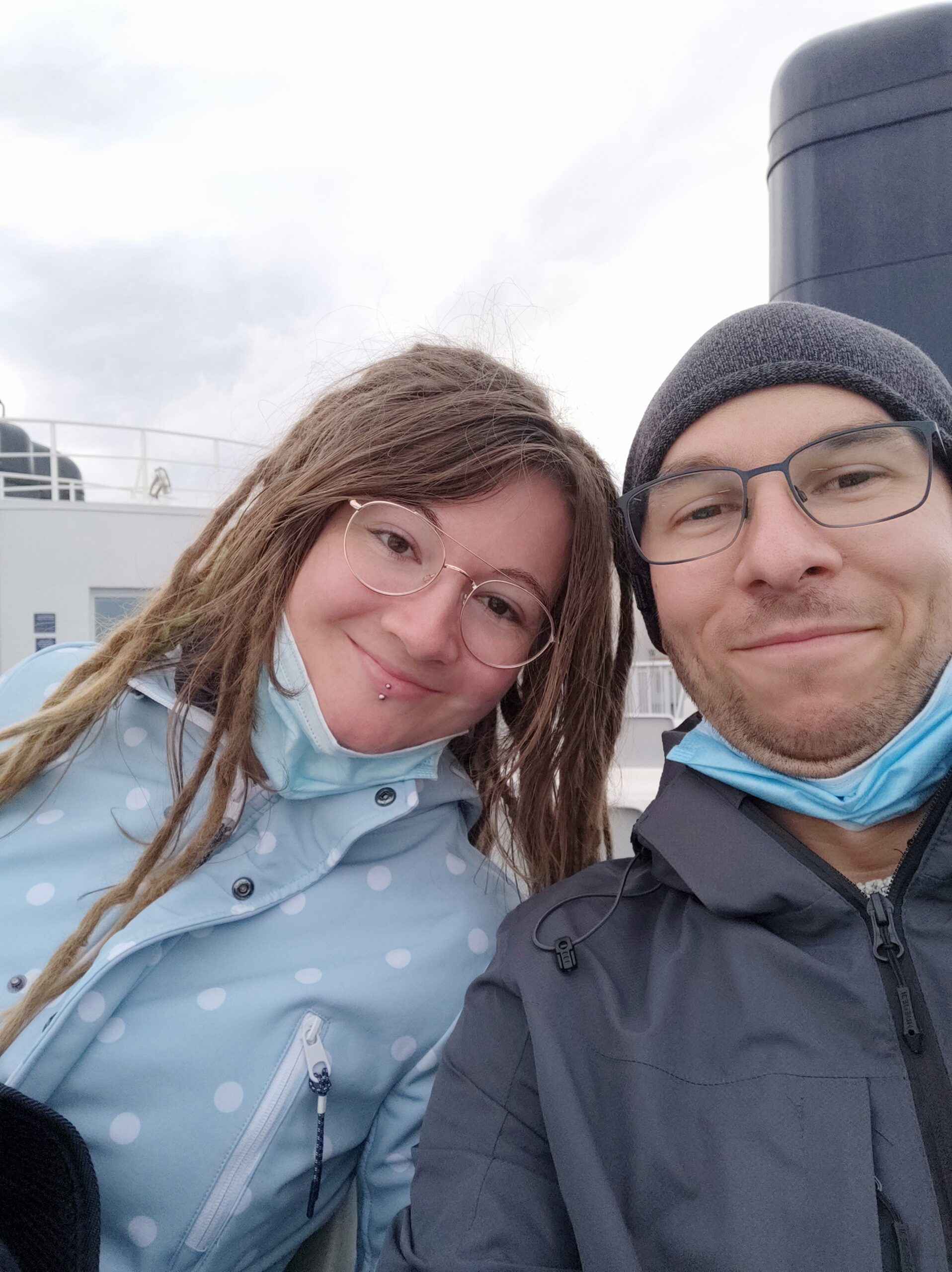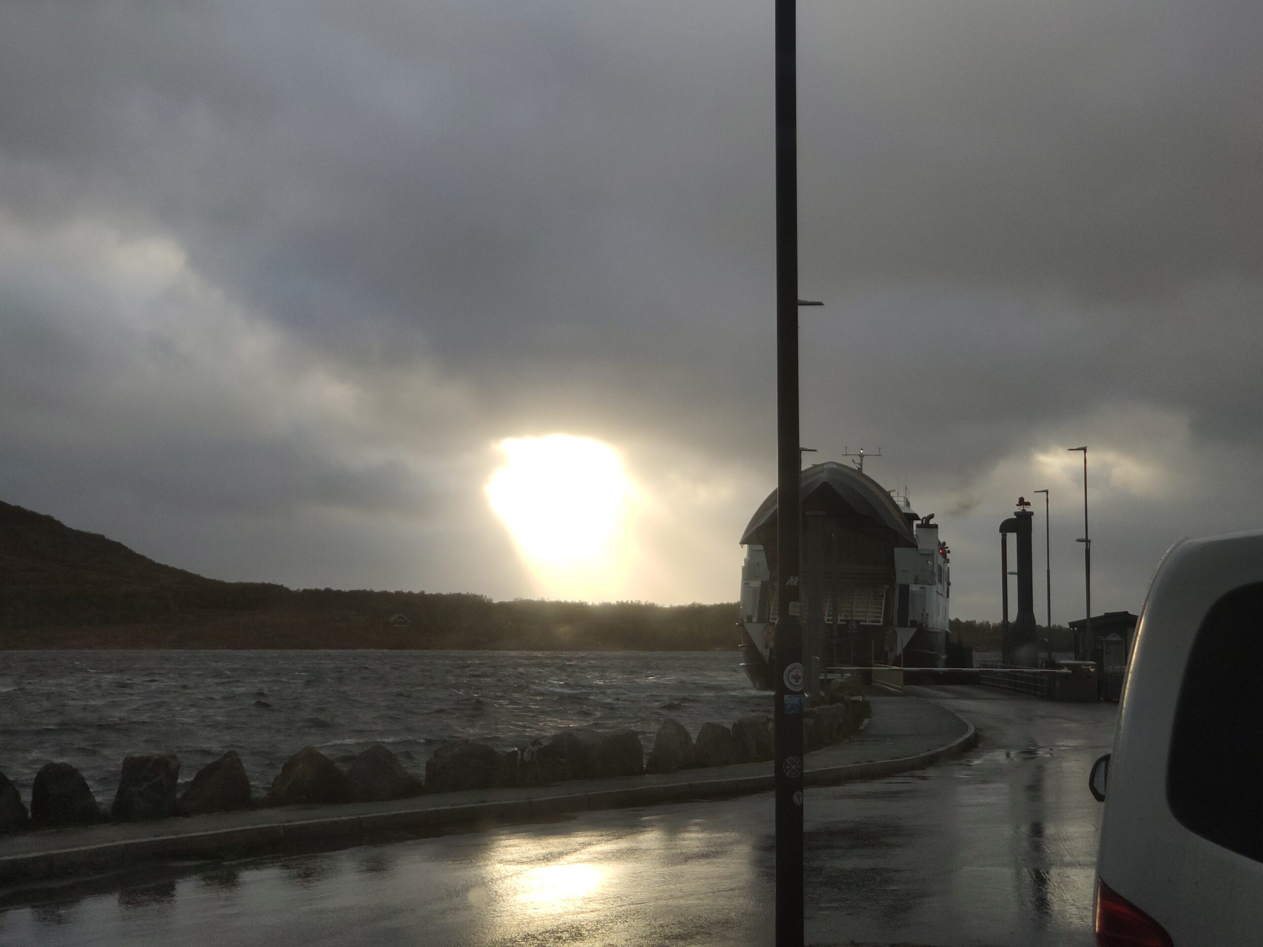 Natürlich konnten wir für die kurze Überfahrt im Auto sitzen bleiben. Das Gefühl, in Vridolin im Schiffbauch zu sitzen ist gleichzeitig sowohl behaglich und löst Geborgenheit aus, als auch befremdlich. Man sieht nur anhand der Veränderung des Himmels das man sich gerade tatsächlich fortbewegt. Man weiß nicht, wann man ankommt denn die genaue Fahrtzeit kennt man nicht. Als sich dann der Bauch des industriellen Walfischs öffnet und die Fahrzeuge eines nach dem anderen ausspuckt ist man froh, wieder an Land zu sein.
