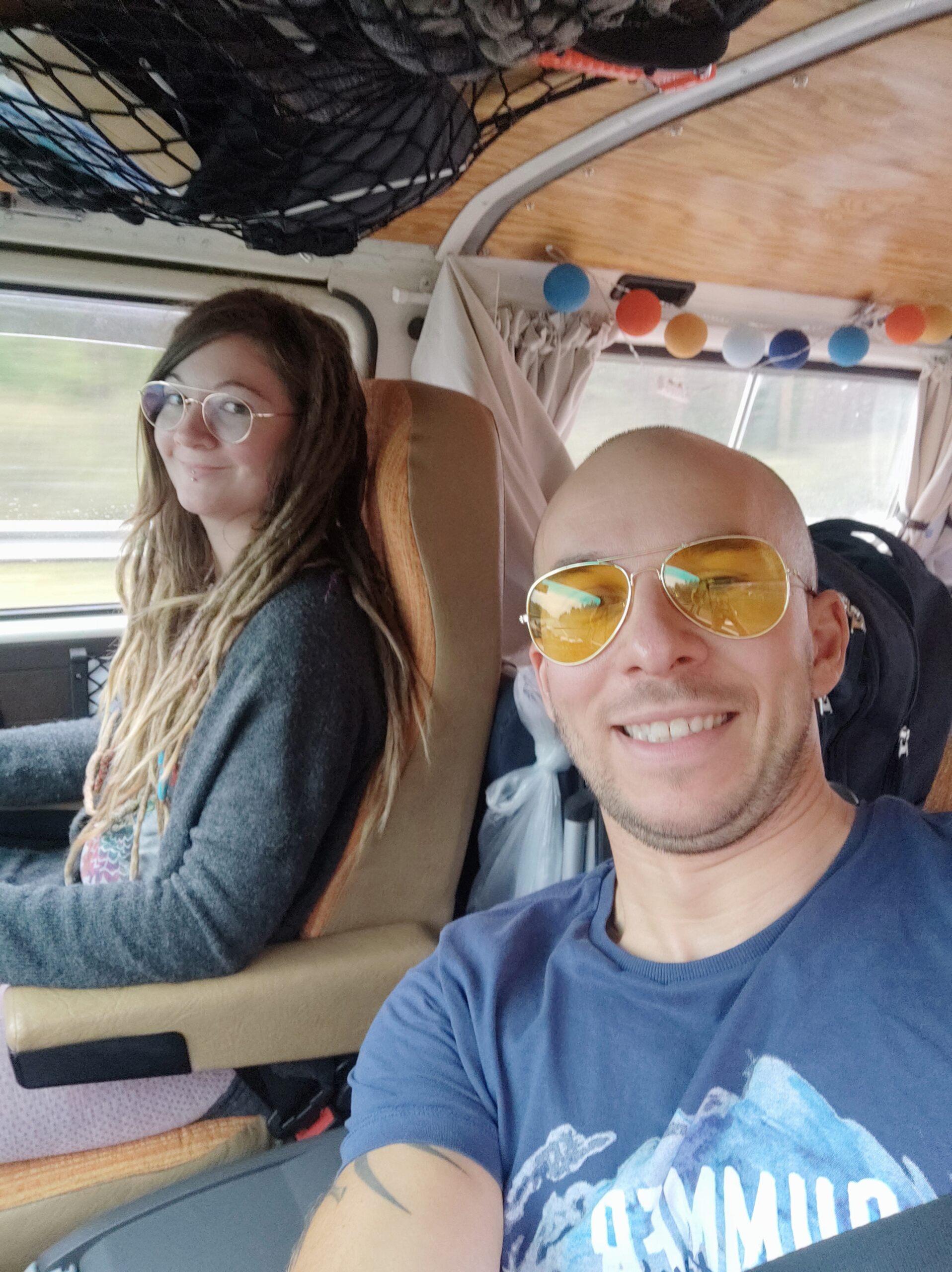 Nach den ersten 300 Kilometern: erster Fahrerwechsel. Vridolin und Janine müssen lernen miteinander auszukommen.
