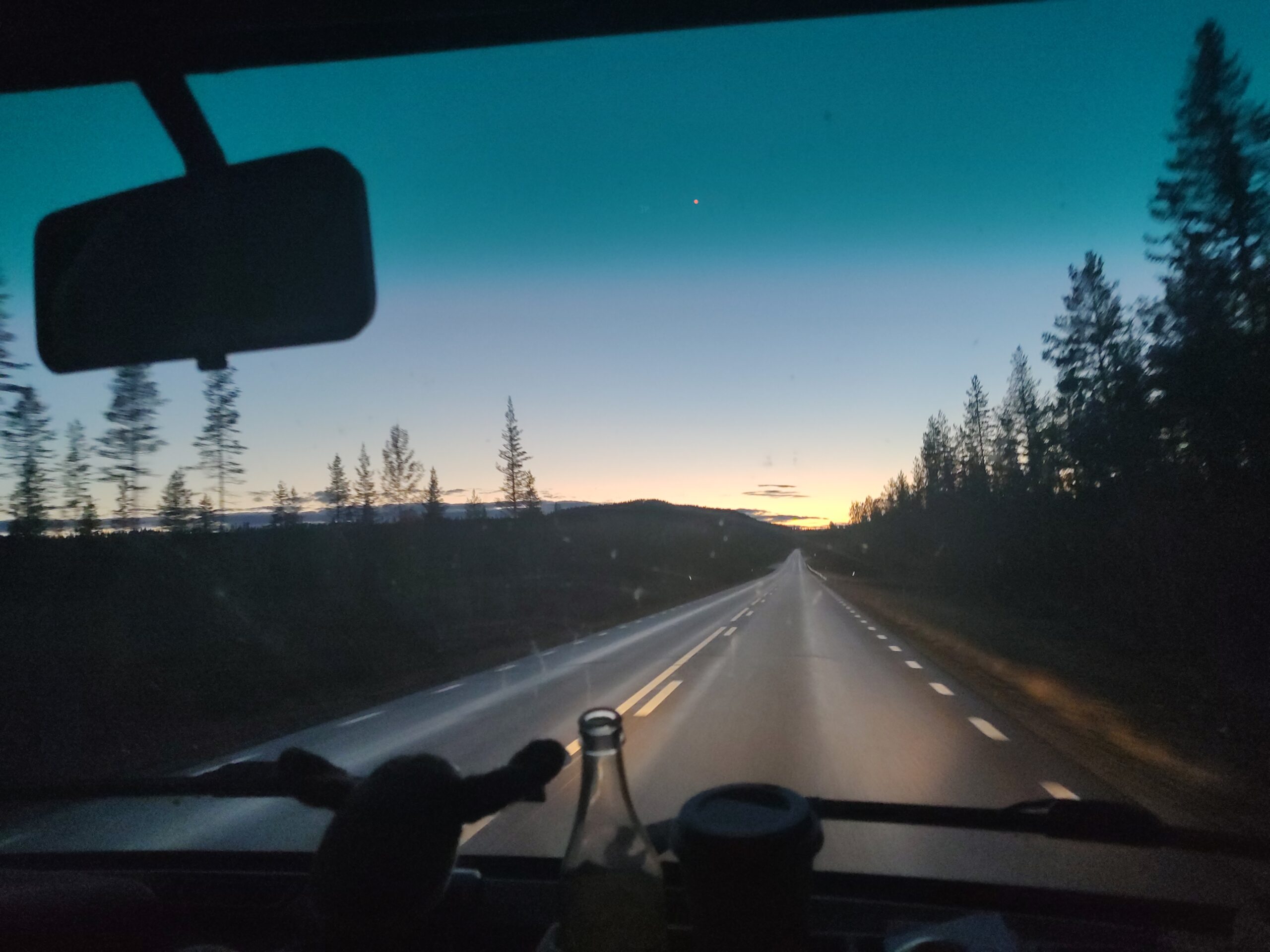 Um 0:30 passierten wir die verlassene, menschenleere norwegisch-schwedische Grenze und ließen das Leuchten hinter uns. Hallo Norwegen, wir gehen jetzt schlafen.