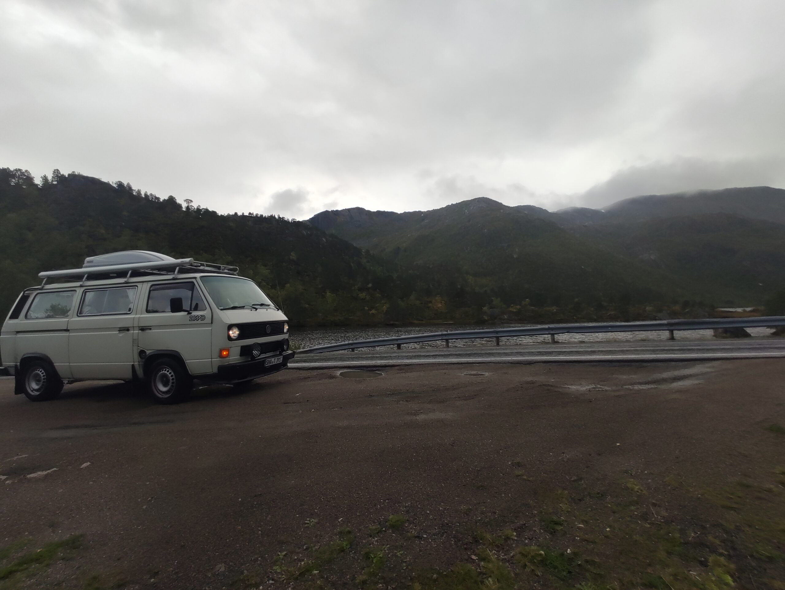 Zum Glück hat Vridolin seine Diesel Inkontinenz überwunden und tropft nicht mehr. Eine Sorge weniger. Norwegen verabschiedet uns so, wie es uns begrüßt hat. Mit Nebel und Nieselregen. Den nehmen wir übrigens mit nach Dänemark. Wir entschuldigen uns schon im Voraus für das schlechte Wetter in Deutschland sobald wir da sind.