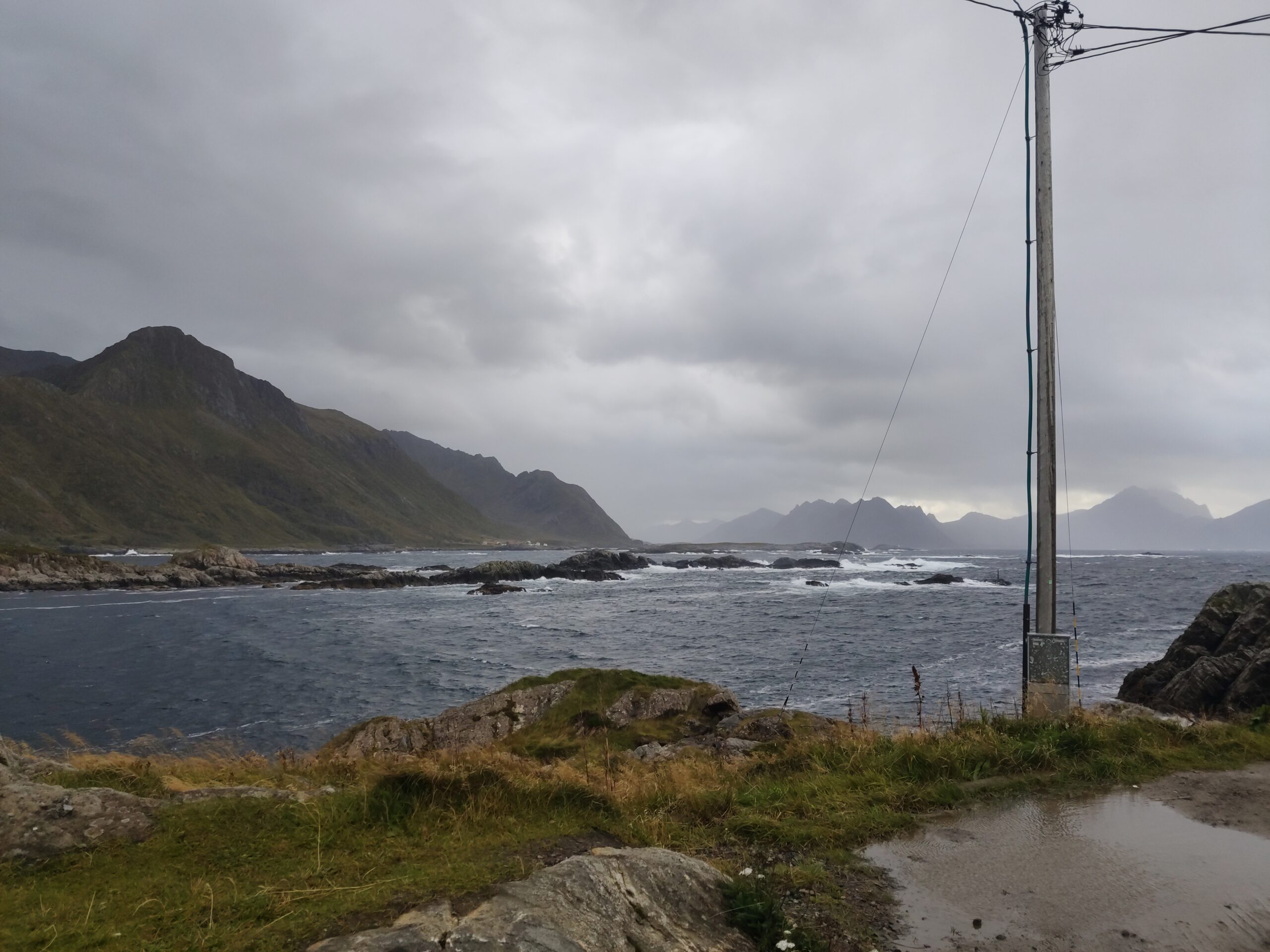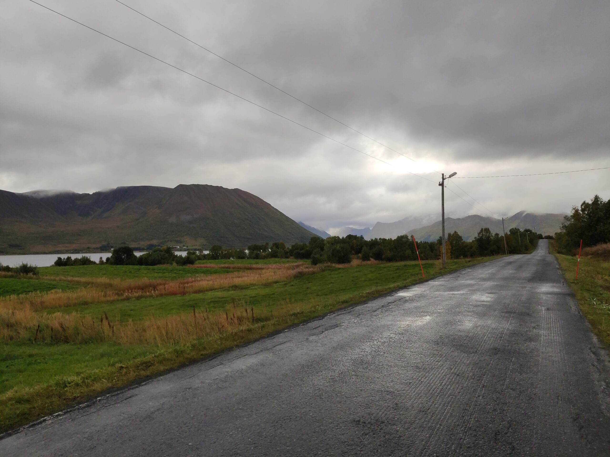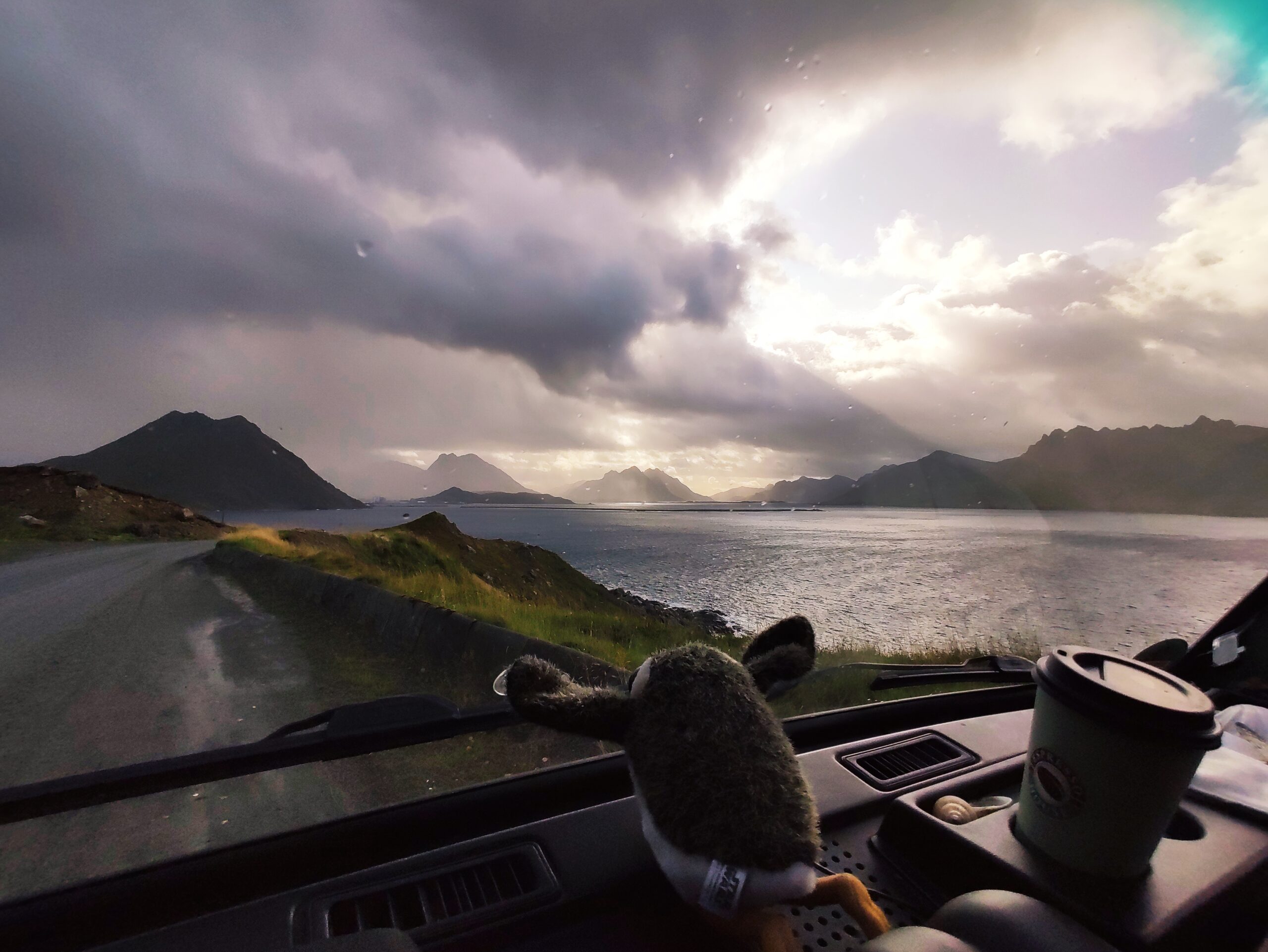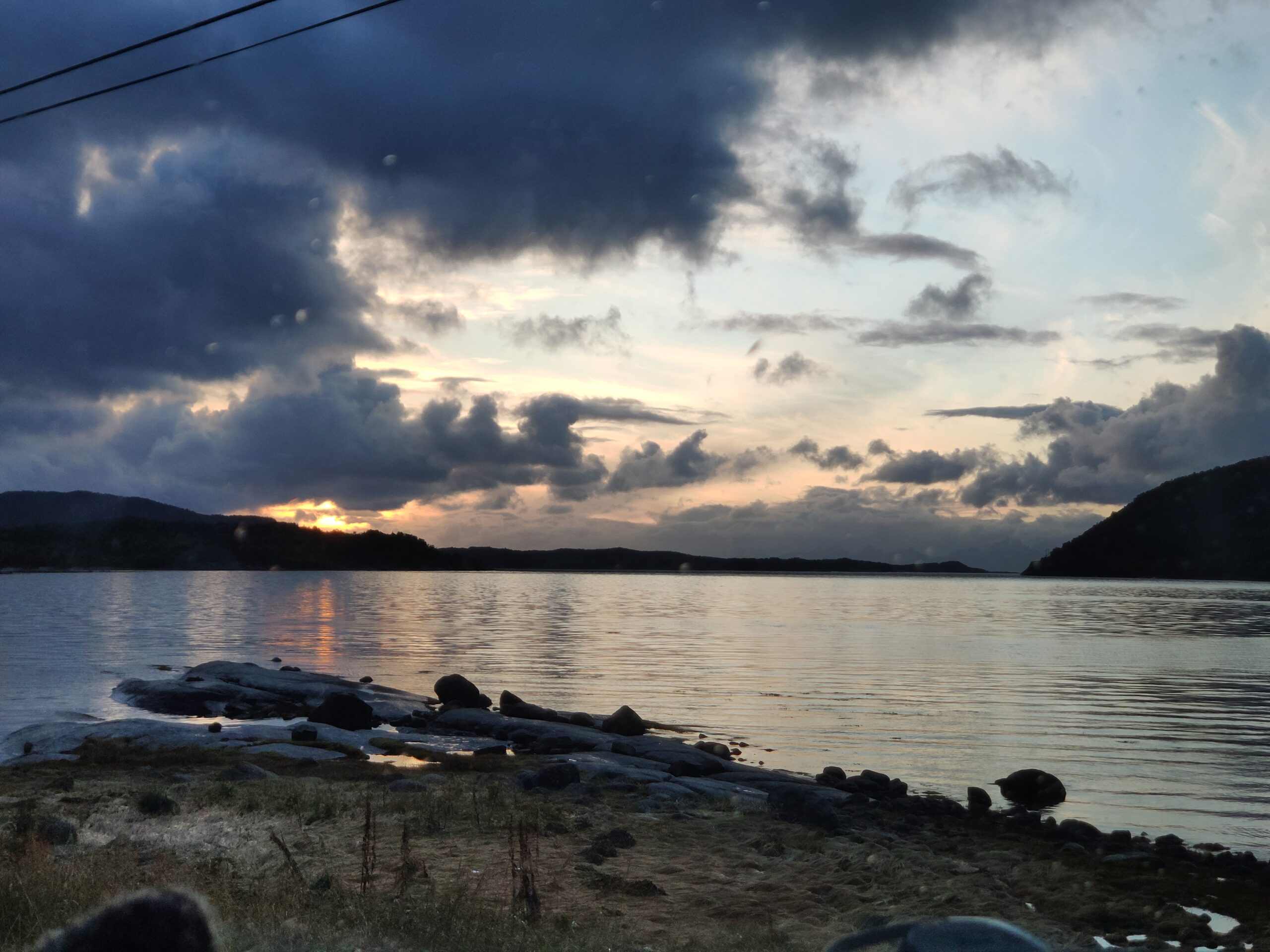 Wäre es nicht so windig und kalt gewesen und hätten wir eine gute Kamera gehabt dann würden wir wahrscheinlich heute noch dort stehen. Dankbar für dieses Erlebnis fahren wir durch den Tunnel wieder zurück und unserem Tagesetappenziel entgegen. Ein Campingplatz in Korgen. Zwei schaukelige Fährüberfahrten und abermillionen Regentropfen später sind wir endlich angekommen.