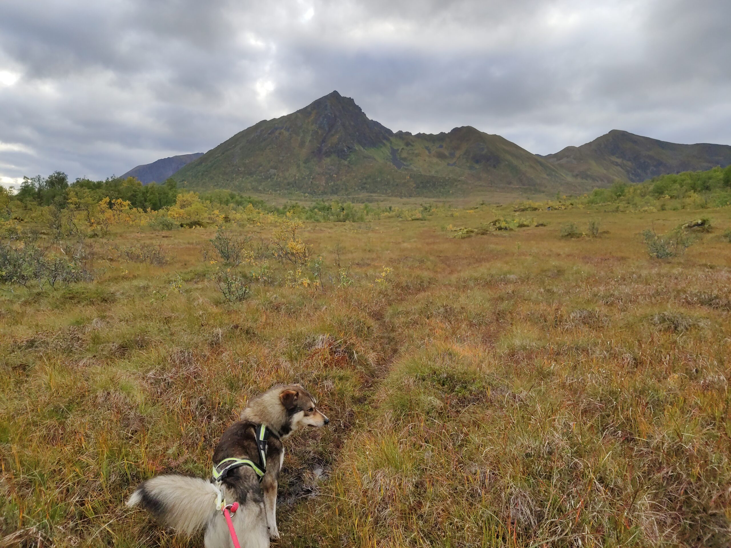 Der Boden unter unseren Füßen gab bei jedem Schritt nach, Mal mehr, Mal weniger. Das Laufen wird hierdurch sehr viel anstrengender denn man muss große Schritte machen. Zusätzlich zieht von vorne noch ein Hund und man muss sich tief in den Bauchgurt hinein lehnen um nicht hinzufallen oder über die eigenen Füße zu stolpern.