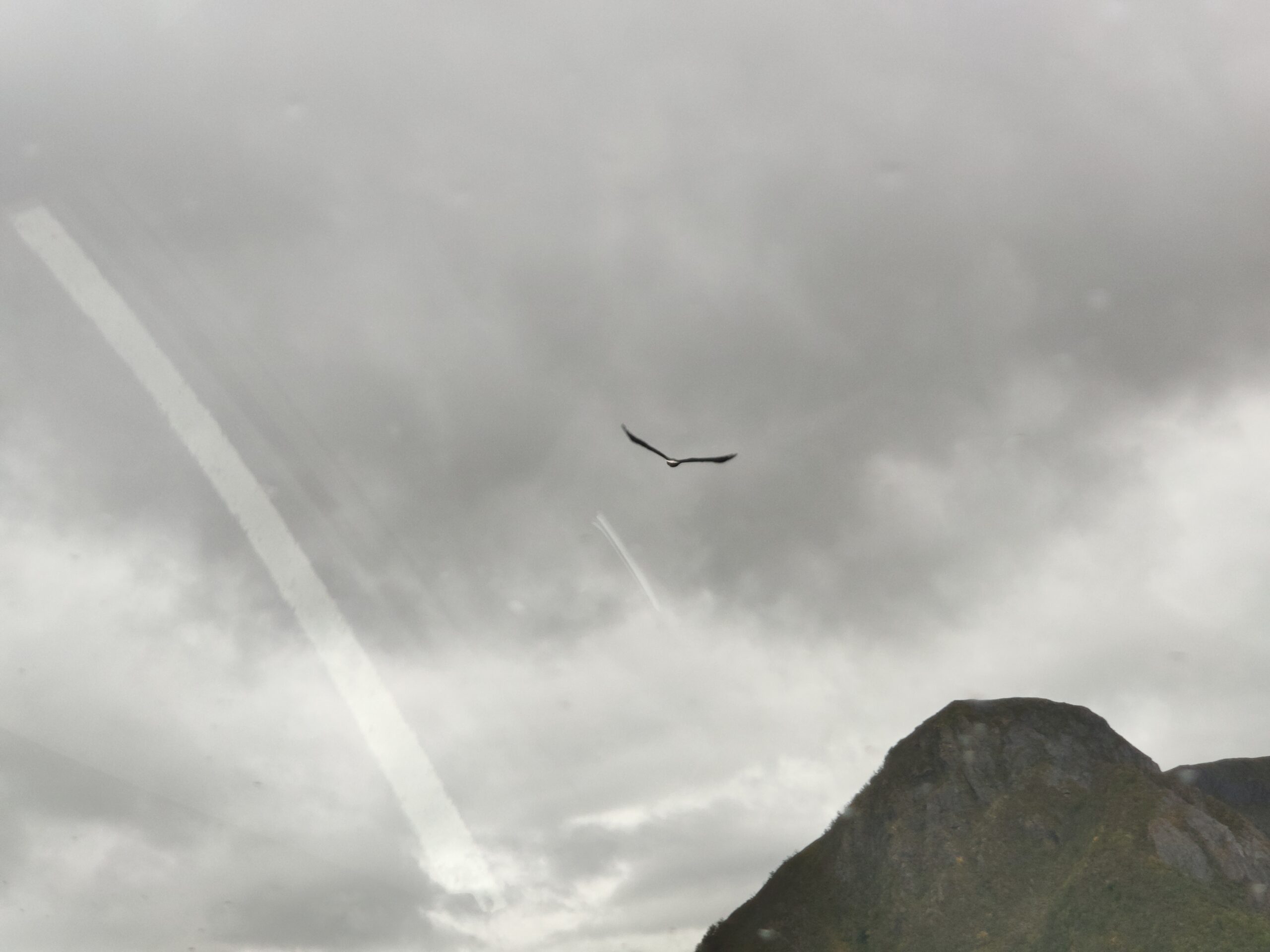 Wir stoppten in einer Haltebucht und der Seeadler schwang sich neben uns in die Lüfte. Majestätisch, mit einer Flügelspannweite von mindestens zwei Metern, erhob er sich. Ganz dicht an unserer Frontscheibe vorbei zirkulierte er in Richtung Himmel.