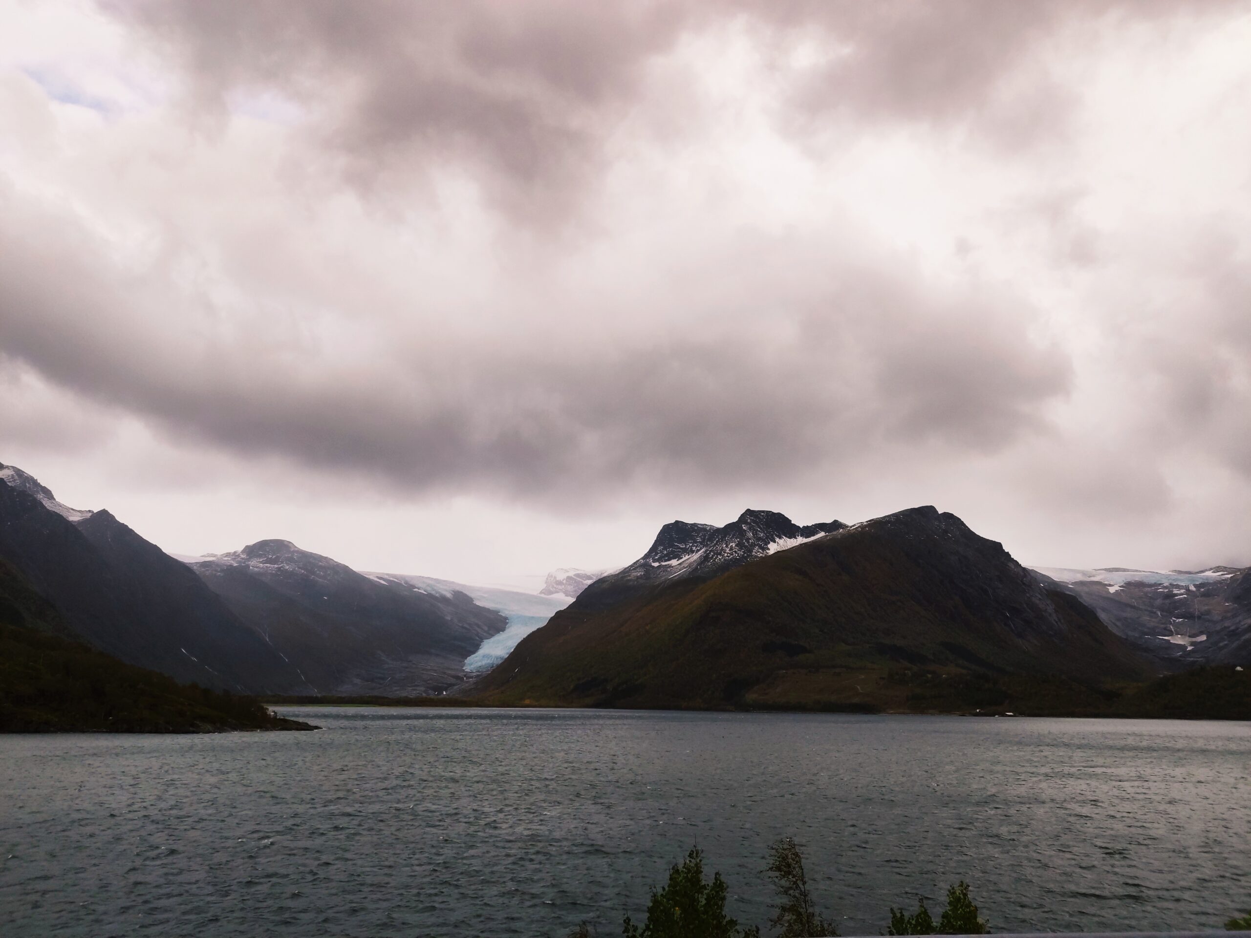 Wir beschließen, das gute Wetter auszunutzen und heute die fv17 entlang zu fahren. Pünktlich zur ersten Fährüberfahrt regnet es – natürlich – wieder und der Wind lässt es sich auch nicht nehmen das Meer mit seinen über 60km/h für uns möglichst ungemütlich werden zu lassen. Eine Stunde nach dem Frühstück erreichen wir trotzdem unser Zwischenziel: den Glomfjord.
