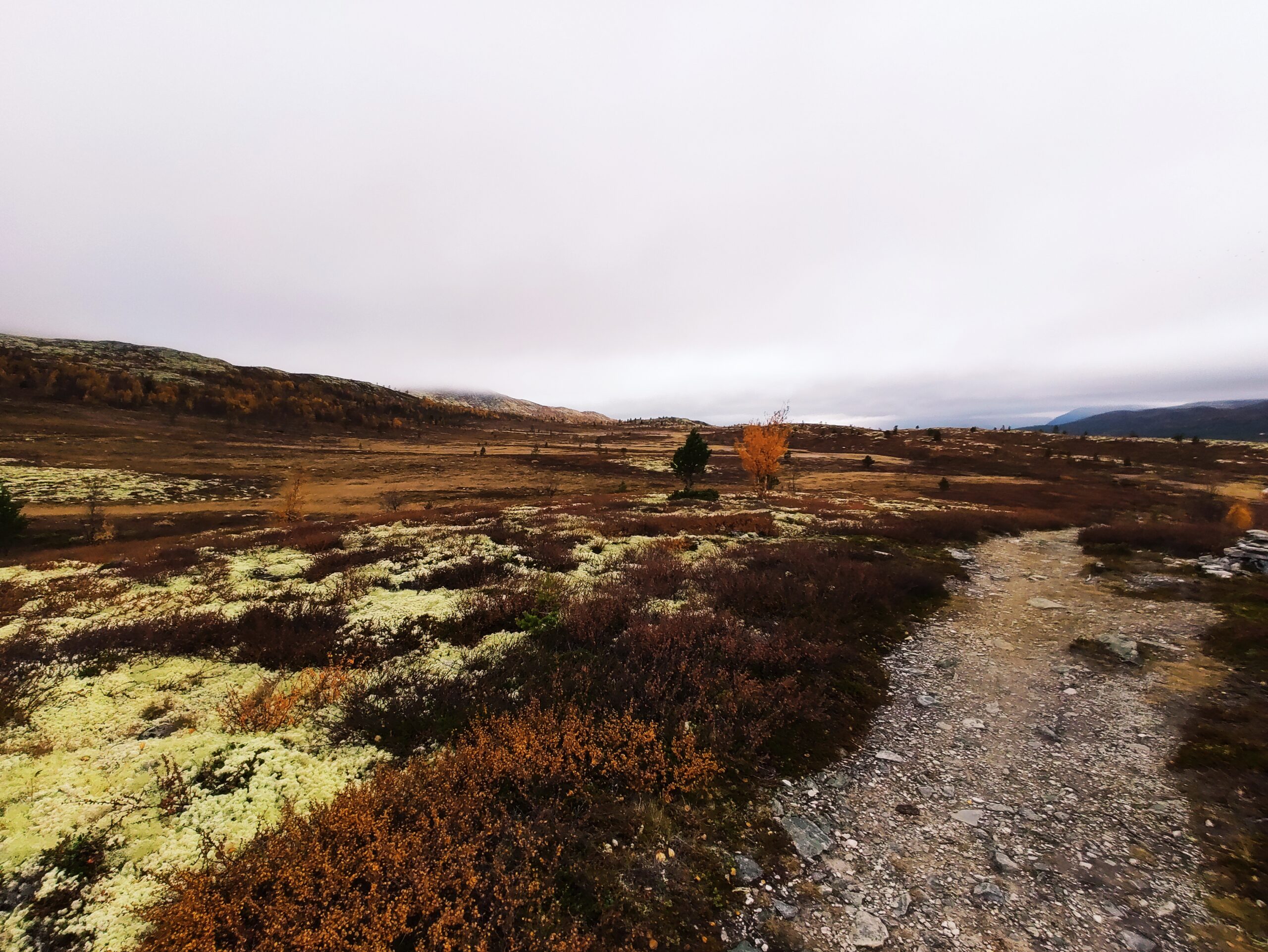In Dombås haben wir Abendessen gekauft und sind einem sehr großen Troll begegnet. Zum Glück war dieser friedlich gesinnt und hat uns den Tip gegeben, auf einen tollen Campingplatz in Høvringen zu fahren. Der Platz befindet sich auf einem Berg im Dovrefjell, über der Baumgrenze gelegen. So ist Marcel dann doch noch zu seiner Serpentinenfahrt gekommen. Vridolin musste sich ganz schön anstrengen. Die Landschaft hier ist beinahe unwirklich. Überall sind Flechten und trotzdem ist alles bunt. Die Leute haben Recht damit wenn sie sagen dass der Herbst Norwegens schönste Jahreszeit ist.